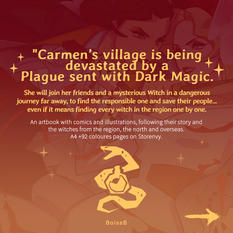 "Carmen’s village is being devastated by a plague sent by a mysterious witch. With her friend’s help, Macarena, Dolores and Azahara she will search for all the witches in the region until she finds the responsible one and stops her, even reaching far away from her land in the north and overseas."