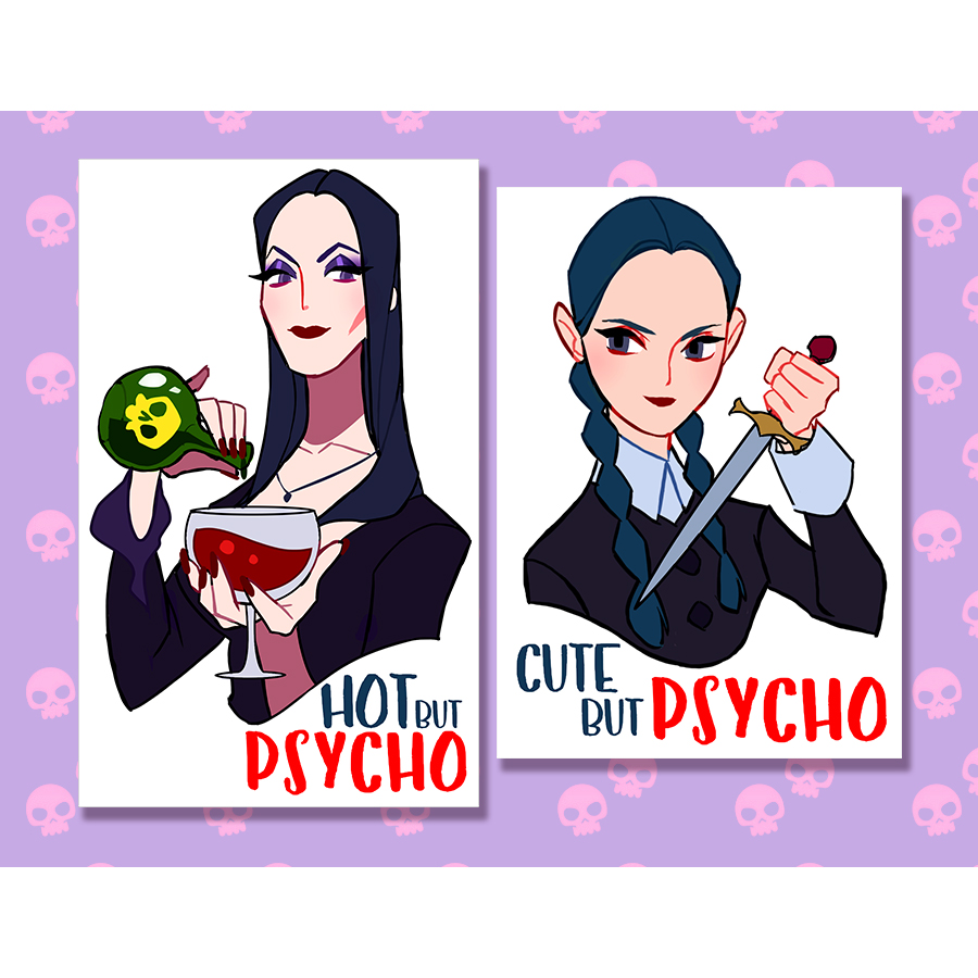 Morticia: 10cm x 6cm Wednesday: 9cm x 6 cm